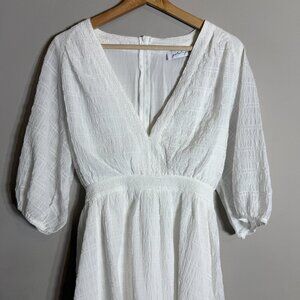 Petal + Pup Quinnie Balloon Sleeve Mini Dress Women's Large White Party Bridal