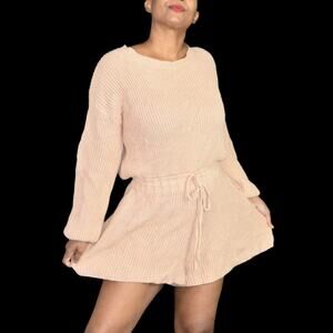 Petal Pup Saige Romper Tan Sweater Knit Lounge Playsuit Brown Oversized Size XS