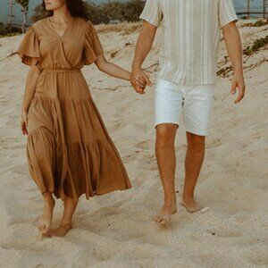 "Petal & Pup" Tan Flowy Dress Barker Dress Small