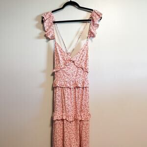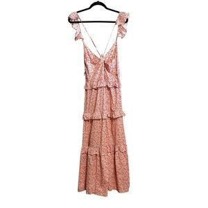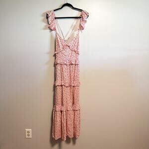 Petal + Pup Tiered Pink Floral Ruffle Detail Aspa Midi Dress Size 6