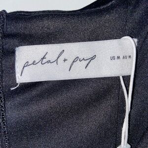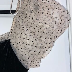 Petal & Pup Velvet Black Women’s Medium Dress with Polka Dot Puff Sleeves