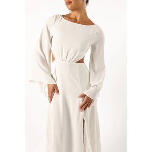 Petal & Pup Vera Maxi Dress - White Long Sleeve Tie Back Size M