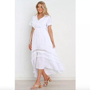 Petal & Pup Womens Chelsea White Ruffle Boho Midi Dress 0