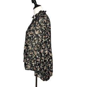 Petal & Pup Womens Floral Pleated Long Sleeve Top Sz M/L Black Semi Sheer Flowy