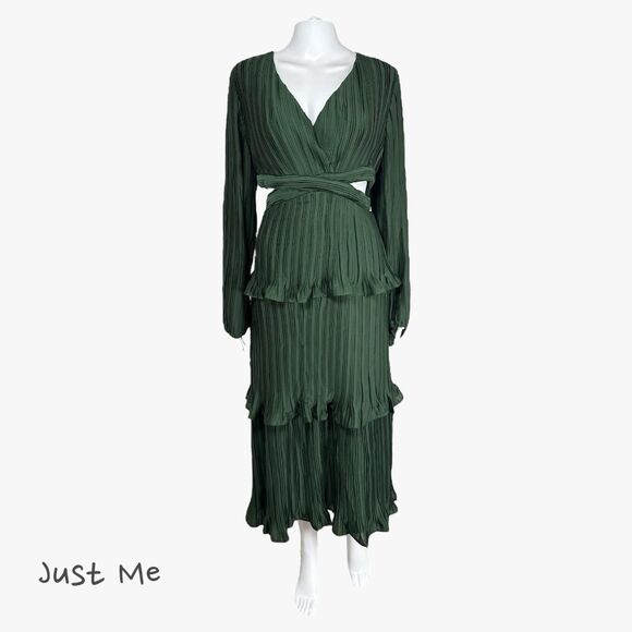 Petal & Pup Women's Pleated Layered Midi Dress in Emerald Sz M