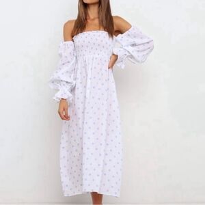 ✨EUC✨Petal & Pup Gabriella Polka Dot Smocked Midi 100% Linen Dress ✨🌸✨