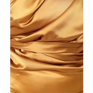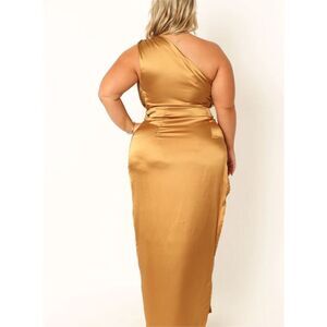 Petal & Pup NADIA ONE SHOULDER MAXI DRESS Bronze Nwot Brand tag cut out Size 12 Retail $109 Our Nadia dress is the perfect style for any special event. Crafted from a soft satin feel fabric, it features an asymmetric neckline with a non-adjustable shoulder strap and front drape pleated detail. The high side split feature adds a touch of drama to the silhouette while the side invisible zip with hook and eye clasp ensures a secure fit. maxi length asymmetric neckline non adjustable shoulder strap front drape pleated detail side invisible zip with hook and eye clasp high side split feature soft satin feel, partially lined material - 100% polyester *Tiny run or snag near waist line see photo