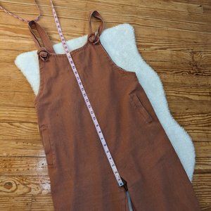 Petal Roz Cropped Relaxed Fit Overalls in Warm Tan