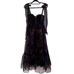 Petal and Pup Women's Midi Dress Small chiffon black floral dark fairy goth vamp