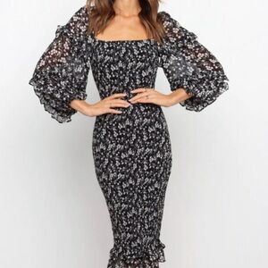 Petal and Pup dress midi floral ruched fitted boho 0 off the shoulder revolve
