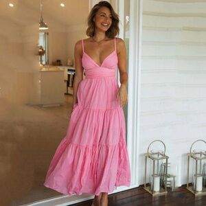 Petal & pup Barbie pink back bow tie maxi dress nwot