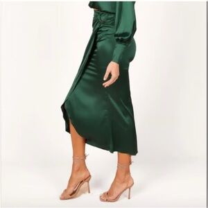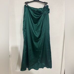 Petal & pup maxi wrap, green satin skirt NWOT sz L midi se measurement