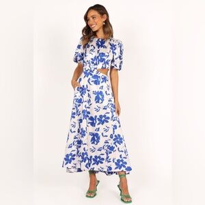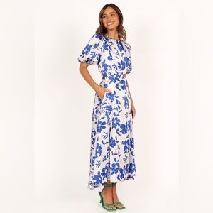 Looking for something to wear this spring? Look no further than this maxi dress! With a round neckline, mid sleeves with elasticised cuffs, side cut outs and an elasticised waistband, it will give you a flattering silhouette. Plus it has functional pockets and a high-low hemline, perfect for whatever the day brings!