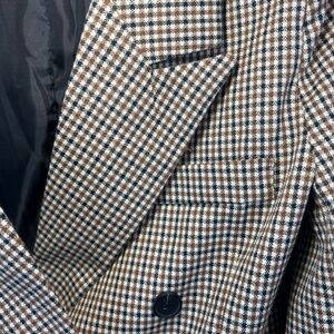 Petal+Pup Women's Juliette Check Double Breasted Blazer Brown Longline Slit Sz 2