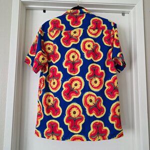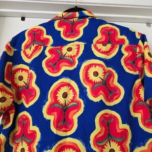 Petals And Peacocks Mens Size Small S Polyester Sunflower Hippie Hawaiian Shirt