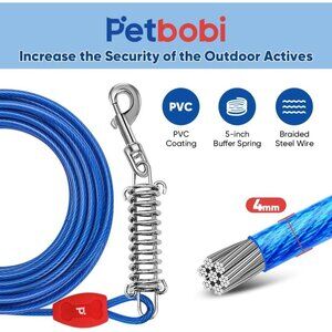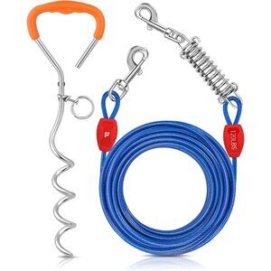 Petbobi Dog Tie-Out Cable and Stake - 15FT Heavy Duty Cable with Spring