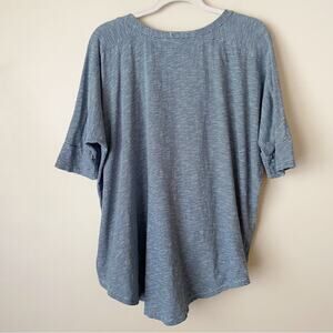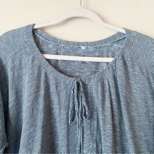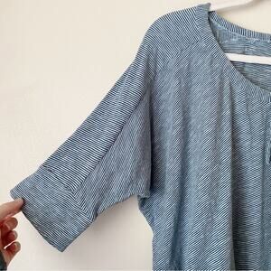 Pete & Greta Johnny Was | Pinstripe Short Sleeve Shirt Top High Low Hem Blue M