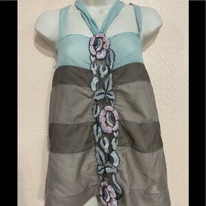 NWT!Beautiful blend of 30% silk & 70% cotton sheer top. Double straps, beautiful sequin appliqué. Dry clean.