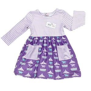 Carousel design. Adorable comes in long sleeve dress, girls romper ,or pants set. multiple sizes including long sleeve dress 0 to 6 months 6 to 12 months. Girls romper 0 to 3 months, 3 to 6 months, 6 to 9 months. Pants set 2T, 3T, 4T. New with tags