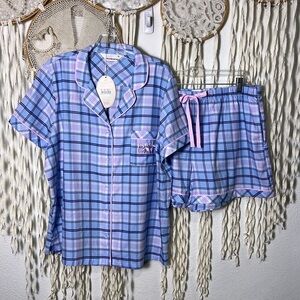 Peter Alexander Women's Pink and Blue Plaid Top and Shorts PJ Set NWT XL