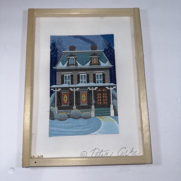Peter Ashe Hand-Painted Needlepoint Canvas Victorian House Snowy Incomplete