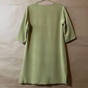Peter Cohen Silk Shirt Dress V-Neck Split Neckline Popover Chartreuse Size XS
