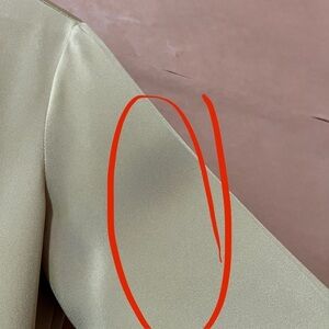 Good preowned condition; has a few tiny snags, some discoloration on sleeve, and a discolored circle on back near hem! See ALL photos!!