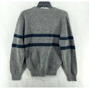 Peter England Sweater Men's Sz S Gray Striped Knit Crew Neck Pullover Wool Blend