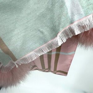 Peter Glenn Reversible Plaid Scarf Wrap w/ Fox Fur Pom-poms