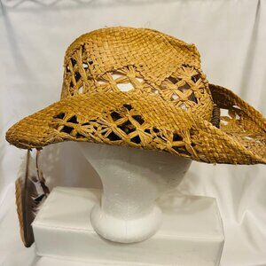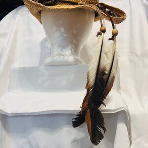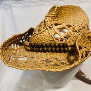 Peter Grimm Straw Cowboy Hat-Brown Beaded/Feathers-Country-Bohemian-Women's
