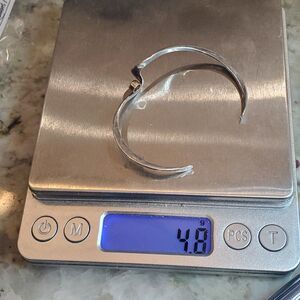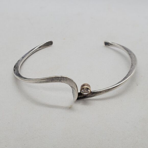 Sterling silver cuff bracelet by Peter James Studio with 14k Gold accent. I'm not sure if the 14k is gold plated or solid, it's likely Gold plated.
