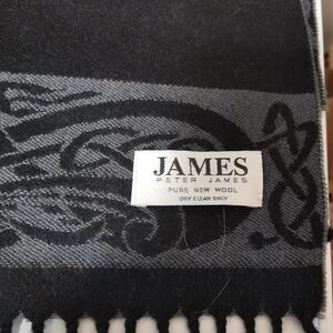 Peter James Womens Pure Wool Scarf Black Cooper Reversible