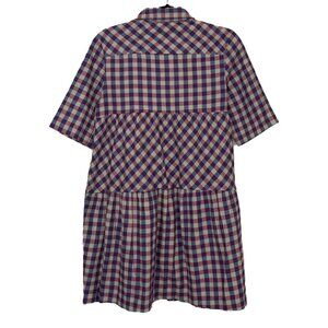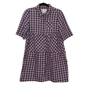 Peter Jensen Purple, Gray & Blue Plaid Flannel Tiered Dress - Size S