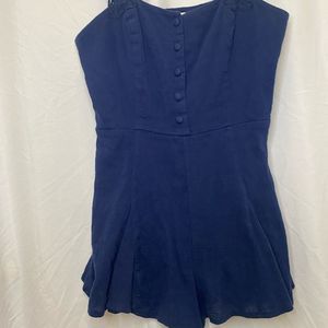 Peter Jensen navy blue romper with crochet straps & cute button detail, size S
