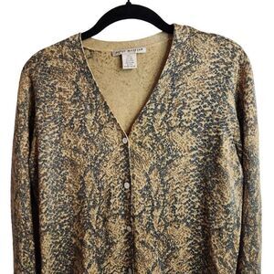Peter Martin Gold Snakeskin Silk Button Up Lightweight Cardigan Size Small