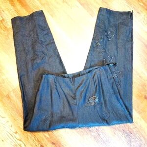 Peter Martin Linen pants size 14 flowers embroidered on front and back