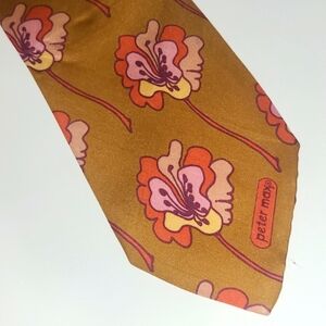 Peter Max Silk Tie Signed Pop Art Bronze Orange Pink Hibiscus Floral Print Retro