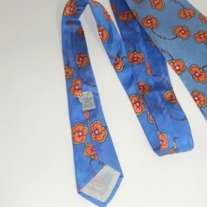 Peter Max Silk Tie Signed Pop Art Vintage Retro Blue w Orange Pink Floral Print