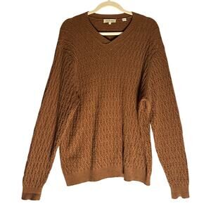 Peter Millar 100% Cashmere Cable Knit Sweater Jumper Sz L Brown V-Neck Luxury
