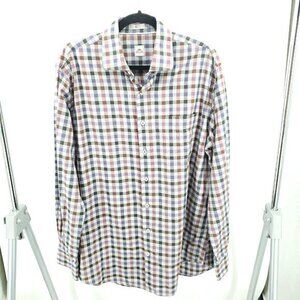 Peter Millar 100% Cotton Check Plaid Button Down Shirt L Gray/Red