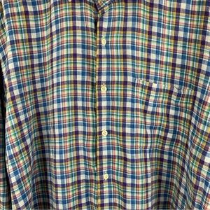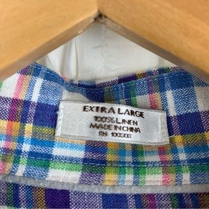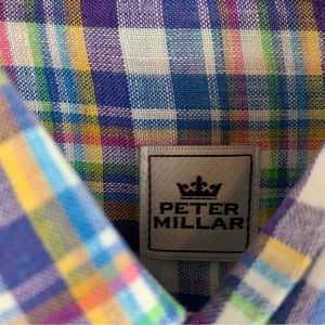 Peter Millar 100% Linen Plaid Shirt Size XL Excellent Condition