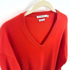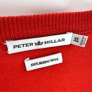 Peter Millar 100% Merino Wool Sweater Mens XL Red Orange V-Neck Long Sleeve