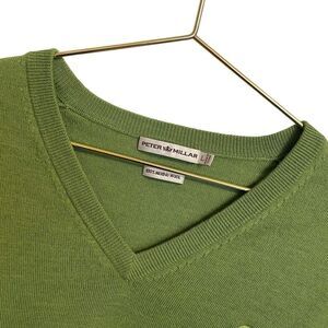 Peter Millar 100 Percent Italian Merino Wool Sweater Green V Neck Size Large