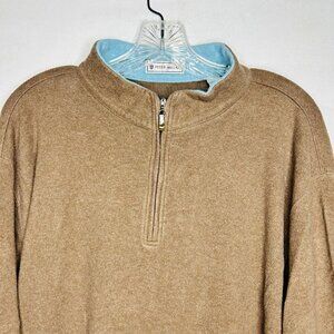 Peter Millar 1/4 Zip Pullover Brown Fleece Golf Sweater Size L 100% Cotton