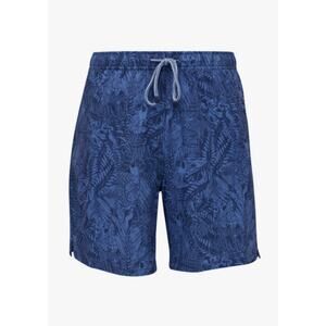 Peter Millar Atlantic Blue Tropical Leaf Print Swim Trunks