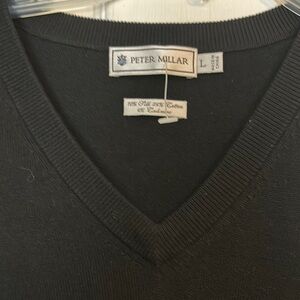 Classic black V-neck sweater vest. Sleeveless design. Perfect for layering.