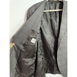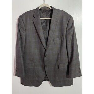 Peter Millar Blazer Mens 46R Gray Blue Windowpane Plaid Wool Sport Coat Business