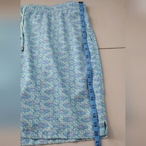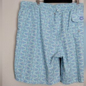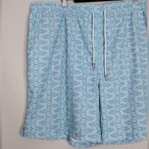 Peter Millar blue aquatic fish print elastic waistband board shorts Sz XXL.