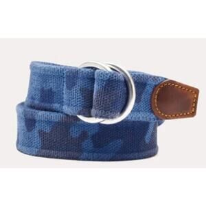 Peter Millar Blue Camo O-Ring Belt β Men's Size 38 β Brown Leather Detail β NWT