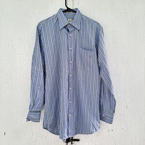 Peter Millar Blue Green Striped Button Down 100% Cotton Medium Long Sleeve Shirt